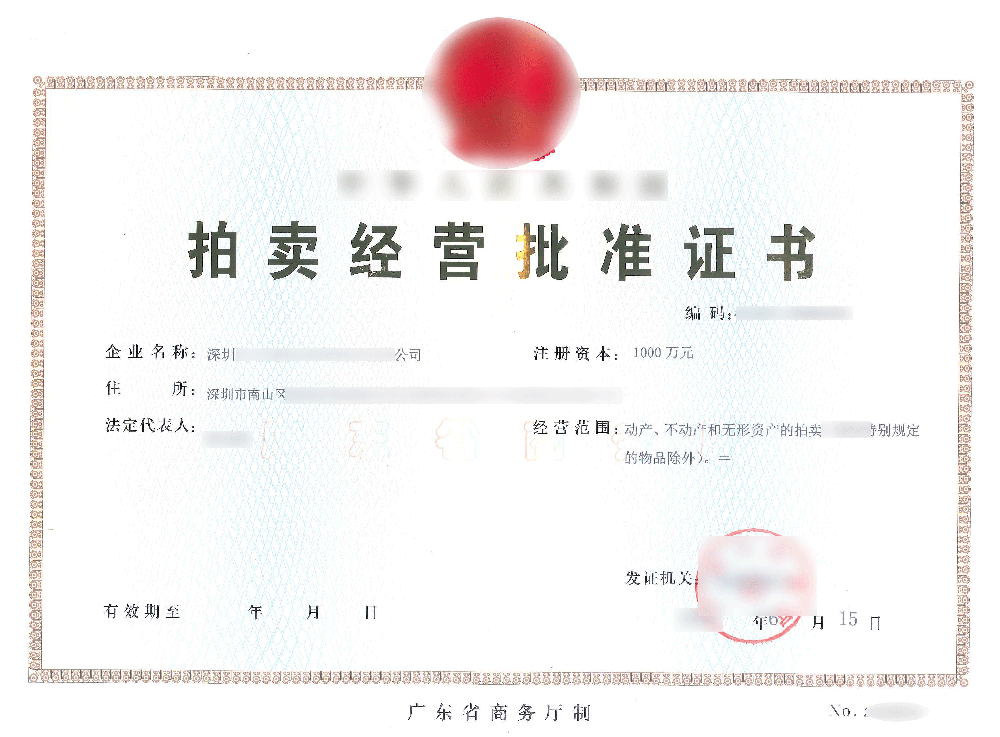 拍卖经营许可证是全国人民代表大会常务委员会为了规范拍文物卖行为,维护拍卖秩序,保护拍卖活动各方当事人的合法权益而颁发的一种合法凭证,是从事拍卖业的企业合法经营的资格证书,是保障拍卖活动正常运营以及合法经营的前提和保障。文物拍卖许可证,是中国国家文物局颁发的文物拍卖经营资质。